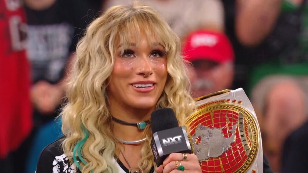 Tiffany Stratton built her name in NXT with athletic, high-impact offense influenced by her gymnastics background. She stood out in the 2023–24 Money in the Bank scene and continues rising through consistent performances. Her mix of flips, power moves, and sharp timing keeps her matches dynamic.